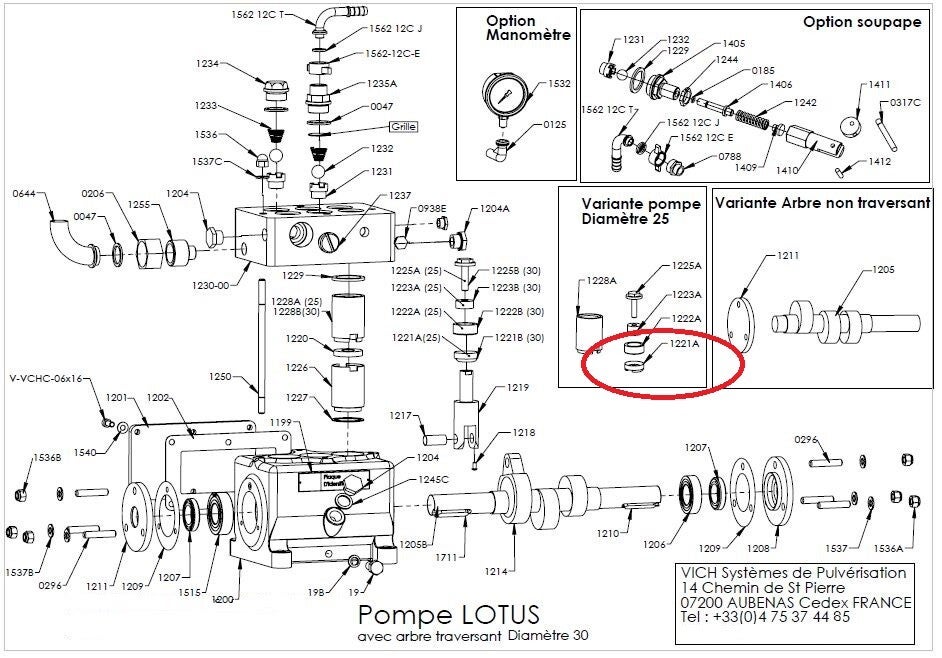 Rondelle d'arrêt pour cuir pompe Vich Lotus D25 Réf: 1221A